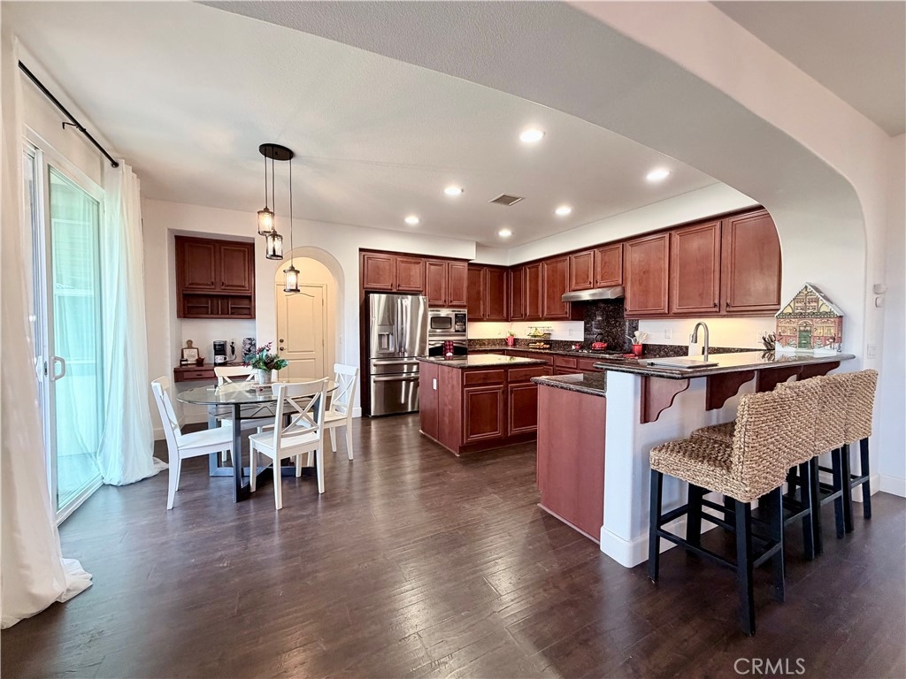 There are homes that simply shelter you, and there are homes that greet you with a quiet sense of presence, the moment you cross the threshold. This Wolf Creek residence belongs firmly in the latter—thoughtfully designed, warmly lived-in, and carrying a rhythm that feels instinctively right from the first step inside. The entry draws you inward, past a main-floor office that feels like a calm refuge from the world. Just beyond, the dining room seems to hold its breath, waiting for the kind of evenings where candles burn low and time slips by unnoticed. As you move deeper, the house reveals its full personality: a sweeping, connected living space where the kitchen, eating area, and family room blend into one inviting expanse. Natural light drifts across the island and breakfast bar, settling near the fireplace whose glow softens each edge of the day. It’s a room that gathers people almost magnetically—conversation flowing, laughter echoing, warmth radiating without effort. On the main level, a private bedroom with its own full, private ensuite bathroom rests away from the flow of the home, offering a sense of thoughtful flexibility for guests or anyone who prefers a retreat close at hand. Upstairs, a generous laundry space stands ready to shoulder the everyday rhythms that make a household run, a small but meaningful reminder that comfort often lives in the details. The remaining bedrooms are tucked away from the main living areas, creating a quieter wing for rest and a bit of breathing room. Outside, the home shifts into something almost cinematic. A long covered patio stretches beneath the sky, framed by the scent of citrus and the rich color of ripening fruit. Through French doors, a secluded side patio feels like a passage into stillness—an intimate corner where the day can begin slowly or settle gently into dusk. Even the garage offers more than expected, with room to expand a hobby, store cherished things, or keep life’s extras close at hand. Beyond the front door, Wolf Creek becomes a natural extension of home—its clubhouse, fitness center, pools, spa, and outdoor gathering areas offering places to move, connect, or simply sit near the outdoor fireplace as the evening air cools. The property lies within the attendance boundaries for Great Oak High School. In every corner, this home carries a quiet assurance—a feeling that it has been lived in with care and is ready, without hesitation, for its next chapter to unfold.