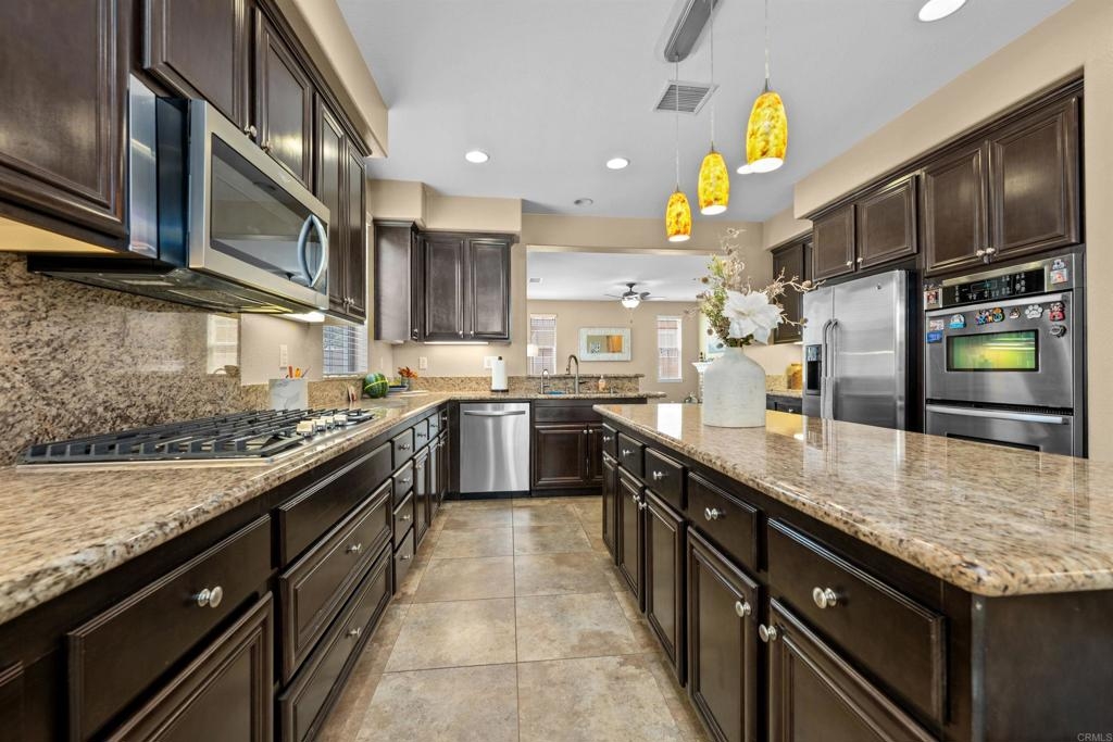 Welcome to this stunning 2,976 sq. ft. home built in 2010, nestled in the highly desirable Wolf Creek/Redhawk community of South Temecula. This beautifully designed property features a rare 3-car tandem garage and offers a spacious open floor plan with high ceilings and abundant natural light throughout. Inside, you’ll find 4 bedrooms plus a loft and 3 full bathrooms, providing plenty of room for family, guests, or a home office. The gourmet kitchen is a chef’s dream, featuring granite countertops, stainless steel appliances, an oversized center island, and ample cabinetry for storage. The kitchen seamlessly opens to the large family room, making it ideal for entertaining and everyday living. The formal dining area and additional living spaces versatile for gatherings both large and small. Solar panels. The primary suite is your private retreat, complete with a spa-like bathroom that includes dual sinks, a soaking tub, a separate shower, and a spacious walk-in closet. Secondary bedrooms are generously sized. Step outside to enjoy your backyard oasis with turf grass—perfect for barbecues, outdoor dining, a Jacuzzi that accommodates up to 6 people, or simply relaxing and enjoying the Southern California lifestyle. Living here means enjoying all the amenities of the prestigious Redhawk/Wolf Creek community, including parks, walking trails, and close proximity to the Redhawk Golf Course, one of Temecula’s premier championship courses. Just minutes away, you’ll also find Pechanga Resort & Casino, award-winning schools, shopping centers, dining options, and easy freeway access for commuting. Best of all, this home offers a low HOA fee and NO Mello-Roos, keeping your monthly costs affordable while still enjoying all the benefits of this incredible neighborhood. This property combines size, comfort, location, and lifestyle—making it one of the best opportunities available in Temecula today. Don’t miss the chance to make this beautiful home yours!