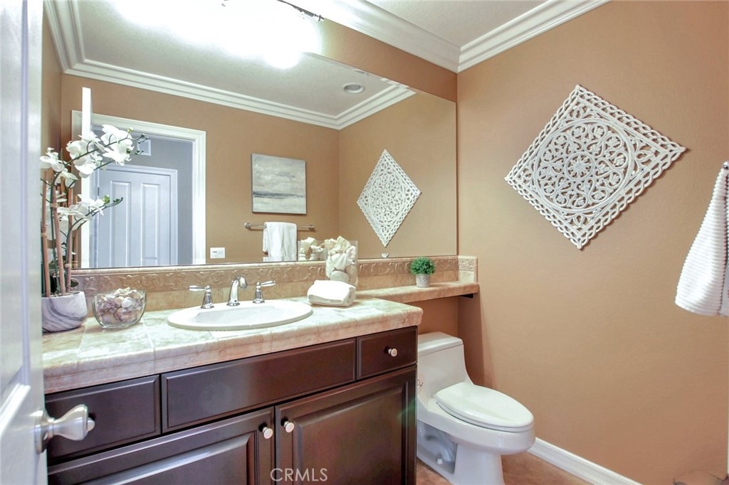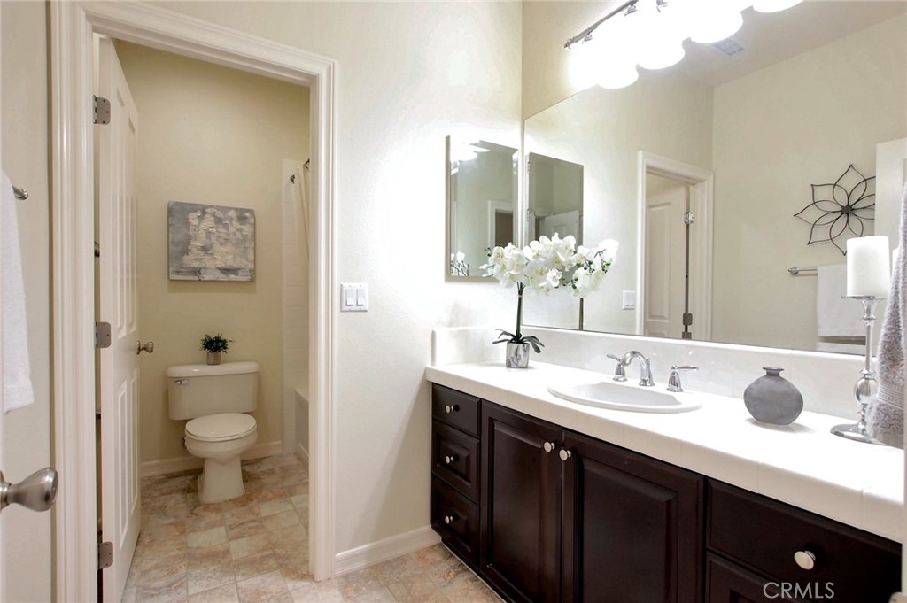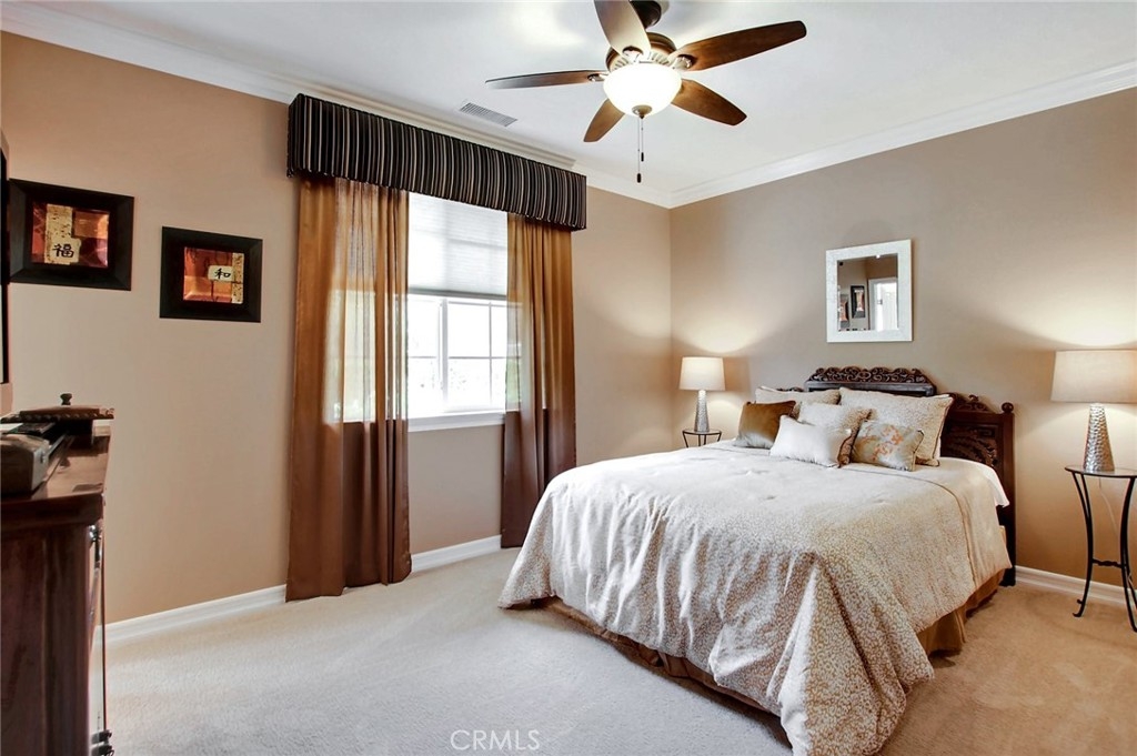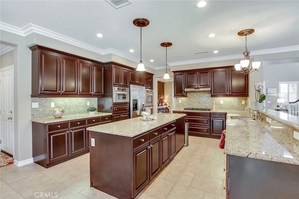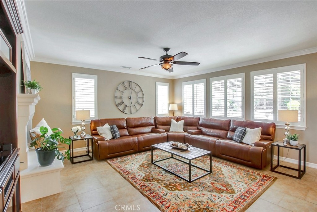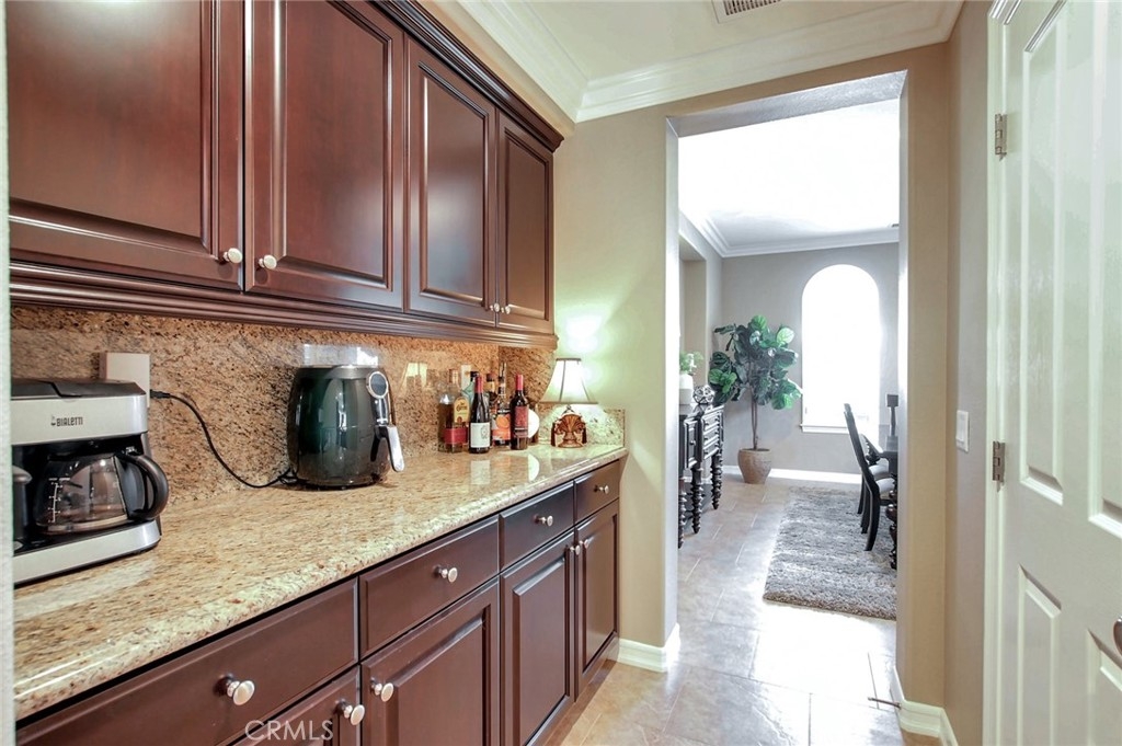 Beautiful 6-bedroom, 4.5 bath home with 4-car garage and upgrades galore. It’s turn-key! Over $235,000 has been spent on upgrades and improvements to this home! Entertain your family and friends in the back yard. There is a salt water pool with four waterfalls, a spa with its own control panel for lights, etc., a built-in gas firepit with bench seating, and a BBQ island with undermounted lighting for night time fun, a Bull BBQ grill, an extra side burner, and a refrigerator. There is also an indoor controller for spa lights, outdoor lights, the pool, BBQ bar lights, and the spa. There are 32 fully-owned solar panels. The family room has a built-in media niche, and the office has custom built-ins as well. The family room has a gas fireplace and the kitchen is well-appointed with stainless steel appliances: double ovens, a microwave oven, a 5-burner gas cook top and even a prep sink with a second garbage disposal at the end of the large island. There is an eat-in kitchen which also has a built-in desk area for homework or menu planning. The butler’s pantry has plenty of extra cabinetry for storage with a pantry adjacent to it. The spacious master suite has His and Hers closets and a large bathroom with shower, a jetted tub, and separate vanities and sinks. The other bedrooms upstairs are on a different wing, and the hallway leading to them abounds with linen storage cabinets floor to ceiling. There is an upstairs laundry room with built-ins for storage as well as cabinetry and a deep sink. Two bedrooms upstairs have views of beautiful mountains and each has a door leading outside to a balcony. The suite downstairs (bedroom with ensuite bath) has a separate entrance out to the tranquil back yard, which would be perfect for guests, a mother-in-law, or a nanny. There is crown molding and there are custom window coverings as well as plantation shutters throughout. The 4-car garage has lots of built-in storage cabinetry and epoxy flooring. There is also an optional Tesla electric car charger.