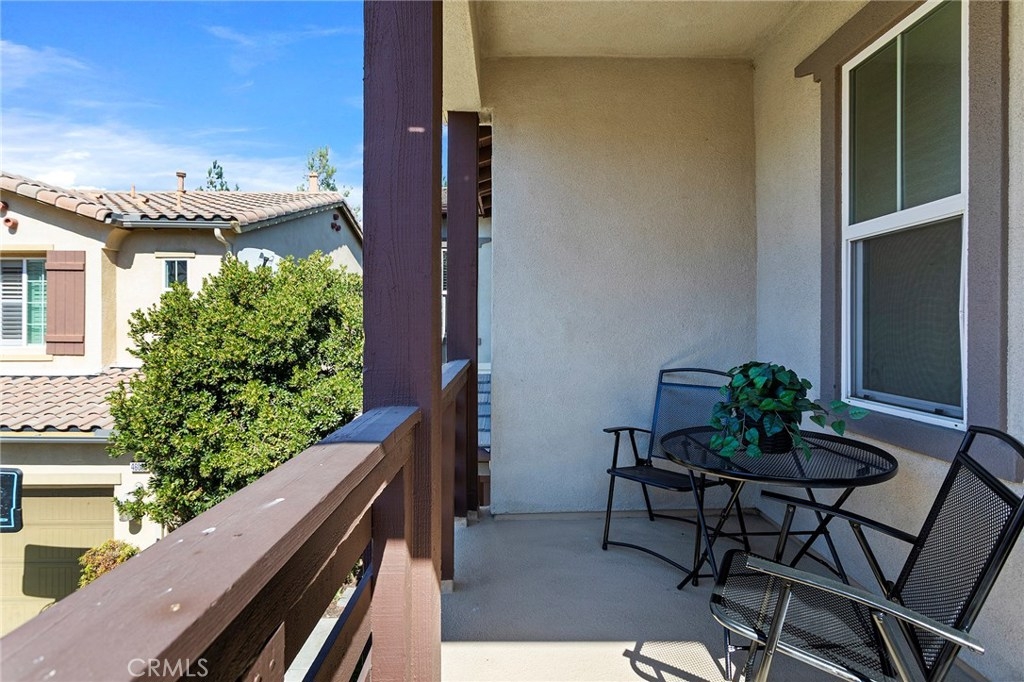 Wow! Welcome to prestigious Wolf Creek! Walk in to this FORMER MODEL to find high ceilings with an open concept kitchen and living room with plenty of natural light provided by dual pane windows. Downstairs has ceramic tile throughout. The kitchen has an exceptionally large center island with bar, stone style counter tops with glass backsplash, beautiful white cabinets (most upper cabinets have glass doors) with dining area overlooking the lush backyard. Large walk-in pantry that extends under the stairs. Pedestal sink in the downstairs powder room. Three large bedrooms upstairs (one with a balcony), 2 bathrooms, and upstairs laundry room with lots of cabinets and sink. The laundry room and upstairs guest bath have travertine tile. Upstairs nook has custom desk that matches all interior cabinetry. The master bedroom has ensuite bathroom with dual sinks, glass shower, soaker tub, corian countertop with a huge master closet. Custom paint and draperies throughout, 2 car garage. Beautifully landscaped backyard with automatic sprinklers, concrete patio and meandering sidewalk on the side of the house. Fencing is mostly block wall with some vinyl. The front yard is maintained by the HOA. Located near the private community saltwater pool. Other Wolf Creek amenities including association pool, gym, activity room, BBQ area, etc. Highly distinguished and sought after schools within walking distance: Temecula Luiseno Elementary School, Gardner Middle School, Great Oak High School