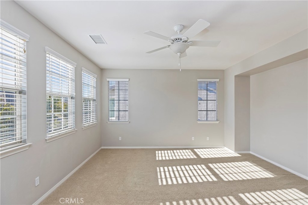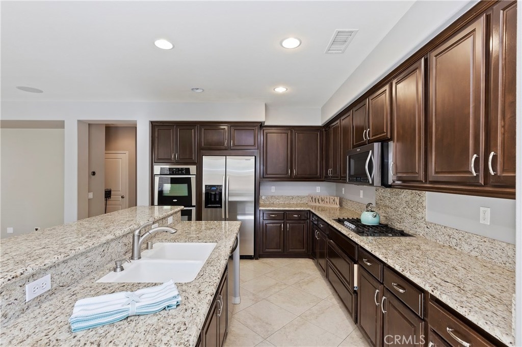 Curtain Rising! This move in ready home boasts over 2517 sqft of living space with 3 bedrooms & 2 ½ baths. Walking up to the front of the home you are greeted by a cozy front porch, perfect for sipping coffee in the morning and watching the sunrise. Gourmet kitchen offers mahogany stained cabinets, granite countertops, eat-up breakfast bar with built in kitchen sink, 5 burner gas cooktop, stainless steel double ovens, butler’s pantry with storage in breakfast nook area. Kitchen is open to the spacious family room includes stone hearth gas fireplace and media niche, built-in surround speakers included and ceiling fan. Tile flooring and carpet throughout. Window blinds whole house. As you make your way upstairs you will find built-in bookshelves in the loft/library, laundry room with sink incl. built-in cabinets, and bright & spacious 2nd bedrooms. Master suite includes inviting master bath with garden tub, separate shower along with double bowl vanities and walk in closets. Relax and take in the sunset in your beautiful landscaped backyard complete with planters, covered patio & fan. Large 3 car garage with storage racks & space for all your toys. Located in S. Temecula in the community of Wolf Creek. Award winning schools: Luiseno Elementary, Gardner Middle School & Great Oak High School. Near I 15, Old Town Temecula, wineries, golf courses, shopping & restaurants. This lovely home shows pride of ownership. Be sure to view more photos and take a tour of the video attached.