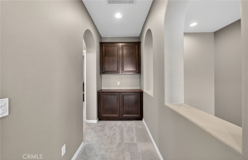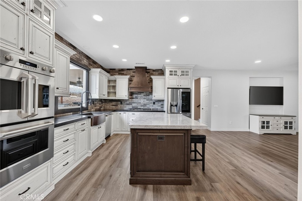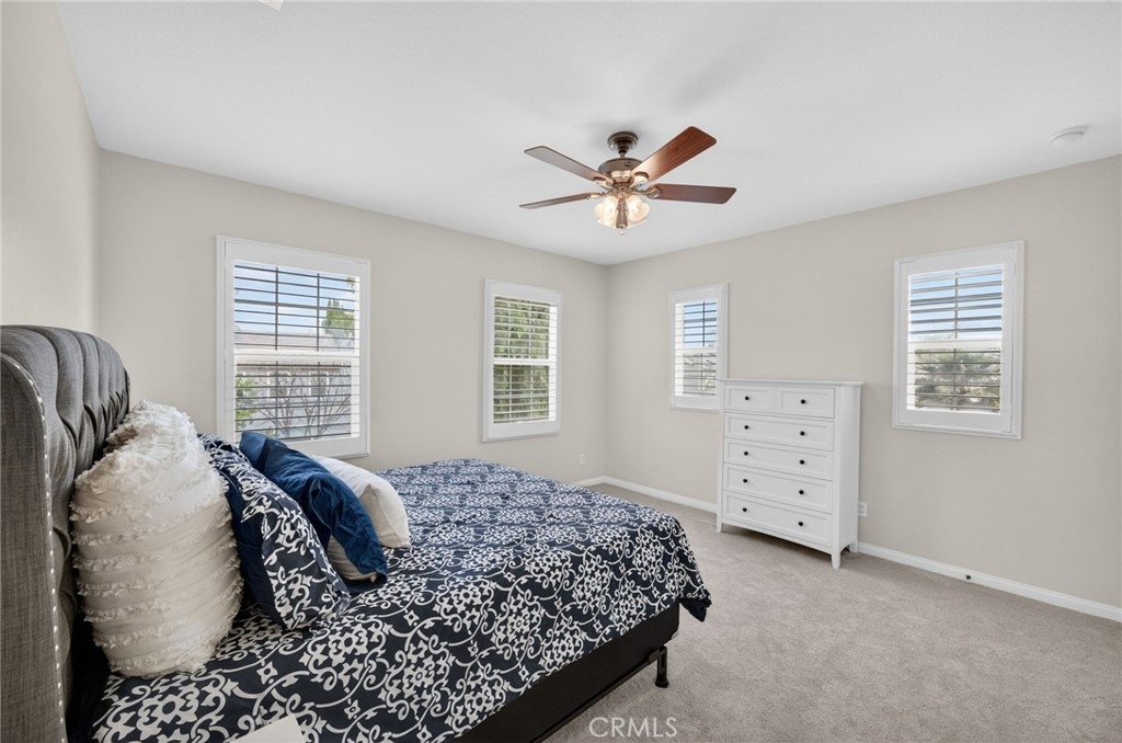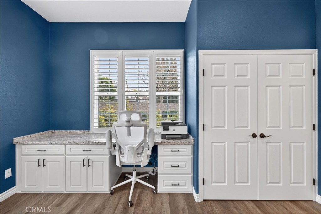 Luxury living meets resort-style comfort in this stunning pool home with paid solar, tucked at the end of a quiet cul-de-sac in the highly sought-after Wolf Creek community of South Temecula. Set on an expansive 10,019 sqft lot, this 4-bedroom, 3-bath residence invites you to experience both elegance and ease from the moment you arrive. A clean, manicured front yard sets the tone as you step inside to find a thoughtfully designed layout. The main floor features a versatile bedroom currently styled as a private office, complete with custom built-ins and granite countertops, ideal for working from home in style. The dining room is designed for connection and entertaining, featuring a built-in buffet and a full wall slider that opens seamlessly to the backyard, creating the perfect indoor-outdoor dining experience. Flowing LVP flooring leads into the warm and inviting family room with a fireplace, just off the upgraded kitchen. Here, you’ll find an island, built-in pantry storage, upgraded appliances, gas cooktop, and quartz countertops that bring both beauty and function together. Upstairs, a spacious loft offers the perfect flex space for relaxation or activities. Two secondary bedrooms share a well-appointed bathroom with dual sinks, while the primary suite is a true retreat, enhanced with plantation shutters. The primary bathroom features dual sinks, a soaking tub, separate shower, vanity area, and a walk-in closet. Step outside to your own private oasis. The backyard is designed to impress, with a sparkling pool complete with grotto and slide, a spa, and multiple spaces to gather and unwind. Enjoy outdoor dining under two covered patio areas, entertain at the built-in island with palapa, fridge, sink, and lighting, or relax by the firepit under the stars. Additional highlights include a 3-car tandem garage with epoxy floors, water softener, and paid solar for added efficiency. Located in the vibrant community of Wolf Creek, residents enjoy access to parks, walking trails, top-rated schools, and close proximity to Temecula’s renowned wineries, shopping, and dining. This is more than a home, it’s a lifestyle.